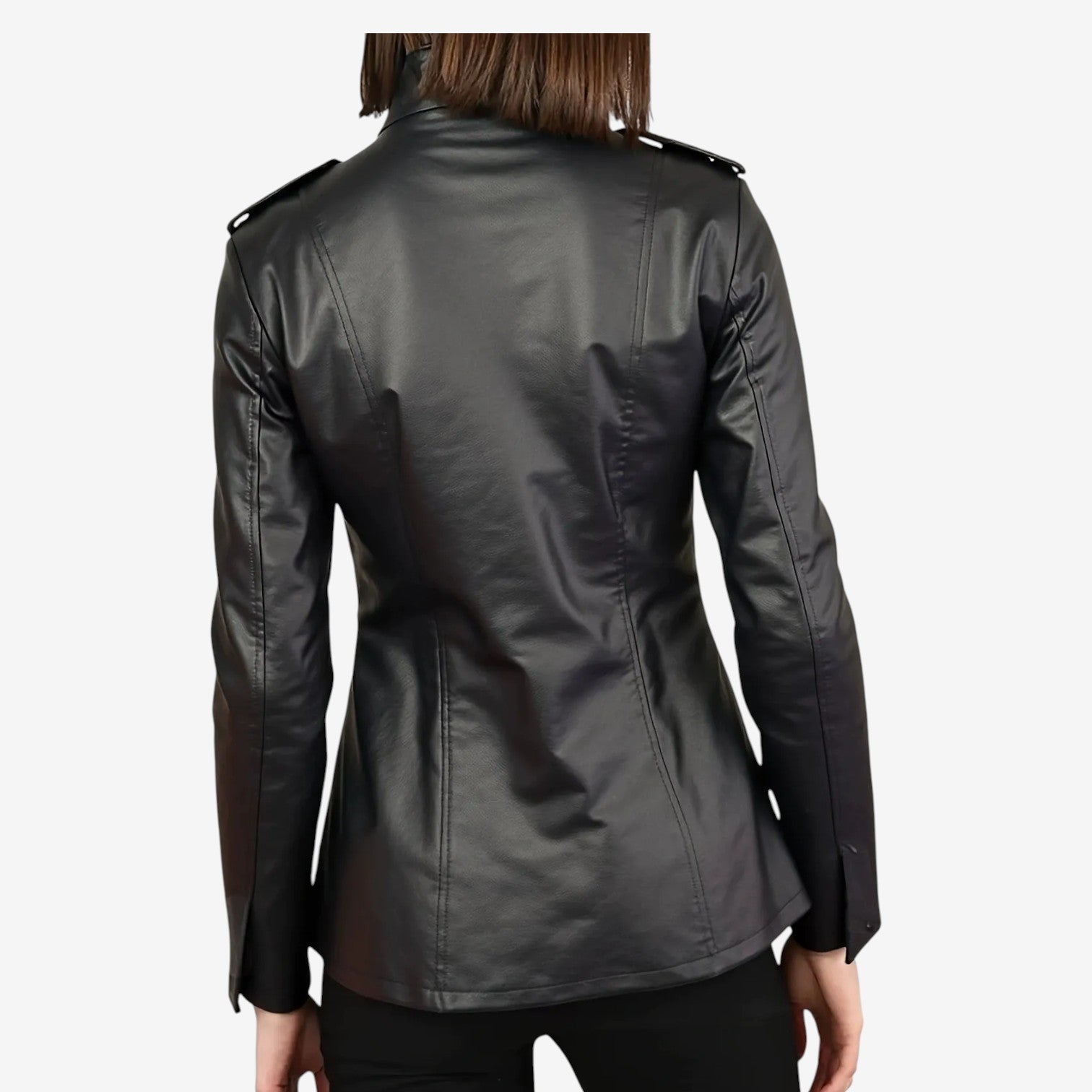 Una silhouette raffinata appare a prima vista, catturando l'attenzione con linee pulite e una delicata lucentezza. Realizzata in un materiale pregiato che suggerisce morbidezza e struttura, la giacca offre una vestibilità sartoriale che segue le forme con discreta precisione. Il design risveglia il desiderio di un'eleganza disinvolta, un capo che avvolge chi lo indossa con sicurezza e compostezza. Un capo pensato per passare con eleganza da un look da giorno raffinato a un look da sera sofisticato, adattandosi con facilità a molteplici occasioni.